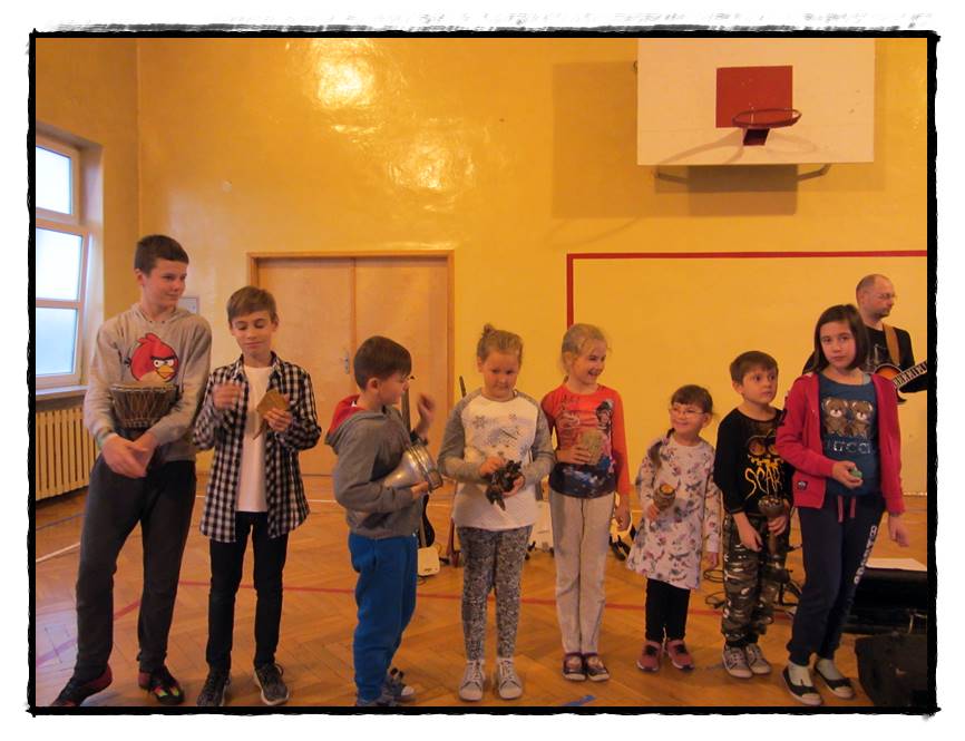 26 października w naszej szkole odbył się koncert zespołu "Avocado". Tematem spotkania były "Instrumenty strunowe szarpane". Instrumenty te charakteryzują się tym, że źródłem dźwięku jest struna wprawiona w drgania poprzez szarpnięcie za pomocą palcy, kostki lub piórkiem w klawesynie. To bardzo duża grupa instrumentów, z których najpopularniejszymi są: gitara, banjo, harfa, klawesyn, lira, cytra, mandolina. W czasie koncertu Panowie zaangażowali dzieci do wspólnej zabawy. Rytmy muzyki country i zorba umiliły czas oraz przeniosły nas w świat niesamowitych dźwięków.