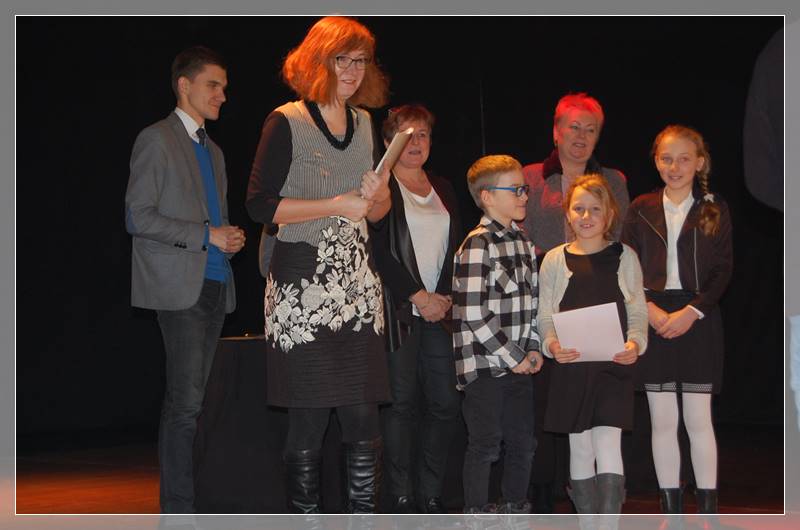 Znamy w końcu wyniki konkursu. Po trzech tygodniach niepewności odebraliśmy nagrodę za I miejsce z rąk organizatorów oraz pełnomocnika Pana Prezydenta Arkadiusza Chęcińskiego. Festiwal odbył się pod patronatem Kurii oraz Teatru Zagłębia. Oprócz nagrody dla całej występującej grupy błyszczeliśmy również indywidualnie! Na 16 występujących zespołów wyznaczono 6 nagród dla poszczególnych aktorów. Łatwo policzyć, że gdyby w każdej grupie występowało tylko ok. 15 osób ( a było ich więcej), to wszystkich uczestników było ponad 240. W gronie NAJLEPSZYCH Z NAJLEPSZYCH znalazło się aż dwoje uczniów naszej szkoły-żadna inna nie może pochwalić się aż takim sukcesem