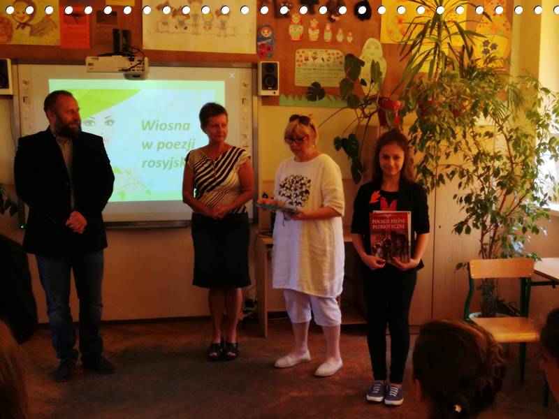 23 maja w Zespole Szkół nr 9 odbył się Międzyszkolny Konkurs Recytatorski ,, Wiosna w poezji rosyjskiej’’. Naszą szkołę reprezentowały dziewczyny z kółka teatralnego. Wypadły wspaniale, zyskując uznanie jury oraz widzów. Kamila zajęła III miejsce, a Julia zdobyła nagrodę publiczności. Gratulujemy i życzymy dalszych sukcesów( bo to nie pierwsze udane występy naszych recytatorek)