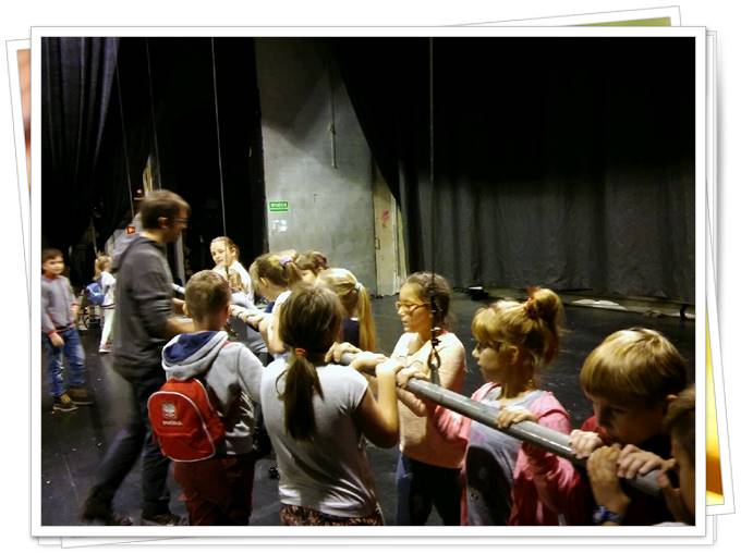 Jak zwykle popularny aktor bardzo szybko nawiązał fantastyczny kontakt z dziećmi, odpowiedział na mnóstwo pytań związanych z wykonywanym zawodem. Niezwykłym przeżyciem była możliwość wejścia na scenę, obejrzenia konstrukcji , zwłaszcza mostu scenicznego. Bardzo spodobała się również wizyta za kulisami, gdzie widzowie nie mają dostępu. Uczniowie rozpoznali elementy scenografii z przedstawień, które mieli przyjemność oglądać. Ogromne zainteresowanie wzbudziła tez garderoba aktorów.