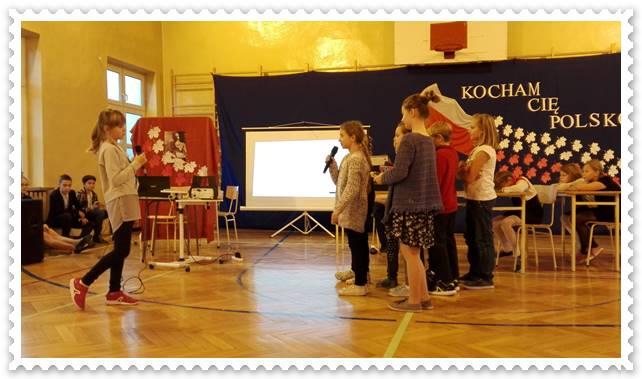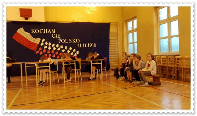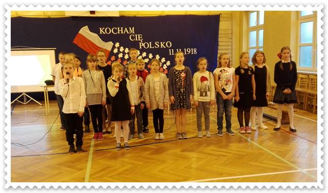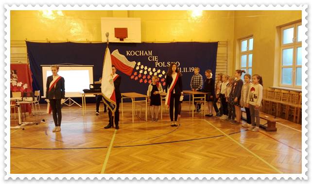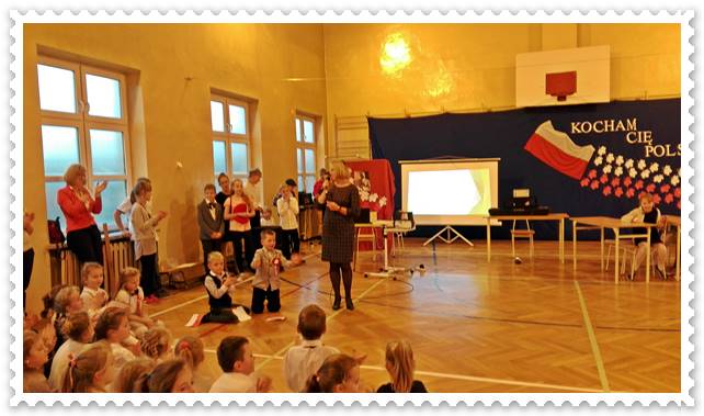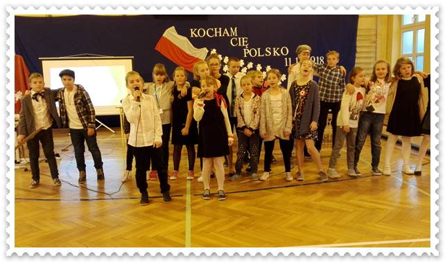 11 listopada to data ważna dla każdego Polaka-99 lat temu nasz kraj odzyskał niepodległość. Z tej okazji koło teatralne oraz szkolny chór przygotowali 9.11 akademię pod hasłem,, Kocham Cię, Polsko’’. W zabawny sposób pokazali dzieciom i młodzieży jak ważna jest bohaterska przeszłość naszego narodu , duma z bycia Polakiem oraz szacunek dla wartości takich jak honor, Ojczyzna i rodzina. Na scenie, obok wielopokoleniowej ,wiecznie zabieganej(no, z wyjątkiem dziadka )współczesnej rodziny oraz rozbrykanej klasy w muzeum pojawiły się postacie historyczne-Marszałek Józef Piłsudski, dzieci Wrześni. Zabrzmiały wzruszające dźwięki Roty, poważny Marsz I Brygady oraz skoczni Ułani. Wszyscy aktorzy wypadli wspaniale, otrzymali gromkie brawa(jak najbardziej zasłużone) , a cała publiczność włączyła się do śpiewania i pieśni patriotycznych, i współczesnego hitu,, Kocham Cię, Polsko’’, który rozbrzmiewał jeszcze długo po zakończeniu akademii