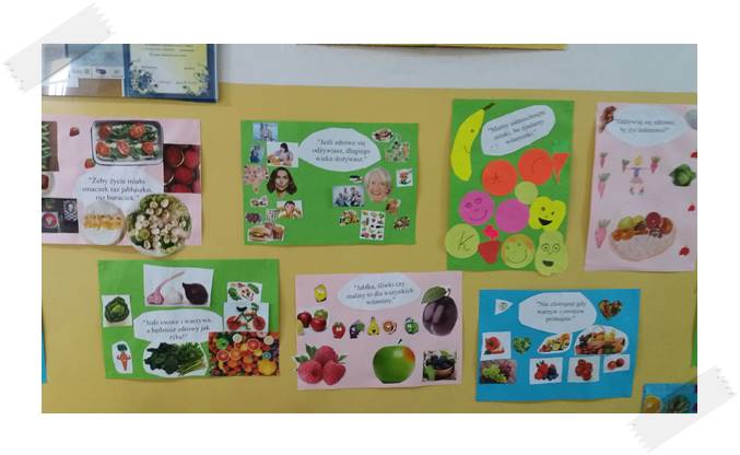 Nie tylko tabliczka mnożenia, zasady pisowni, rzeki Afryki, wzory sumaryczne czy dynastie królów. W naszej szkole promujemy zdrowy styl życia, ruch jako alternatywę dla siedzenia przed komputerem i …zdrowe nawyki żywieniowe. Niedawno obchodziliśmy Europejski Dzień Zdrowego Jedzenia. Klasy I-III przygotowały piękne plakaty, klasy VII na lekcji biologii uczyły się, na czym polega zdrowe i zbilansowane jedzenie, wychowawcy rozmawiali z uczniami na temat zdrowych posiłków, a klasa IVc przygotowała na zajęciach z wychowawcą zdrowe kanapki i sałatki lub wykonała plakaty. Jednak taka dbałość o zdrowy styl życia to nie tylko jeden dzień w roku! Klasy I-III przygotowują cyklicznie kolorowe kanapki, sklepik Spółdzielni Uczniowskiej bardzo wnikliwie rozpatruje asortyment, nie ma kolorowych i niezdrowych wód, jest jedynie woda mineralna. Szkoła od wielu lat uczestniczy w programach Owoce w Szkole oraz Szklanka Mleka. Stołówka szkolna przygotowuje pyszne i zdrowe posiłki bez chemii, nadmiernej ilości soli , z dużą ilością warzyw