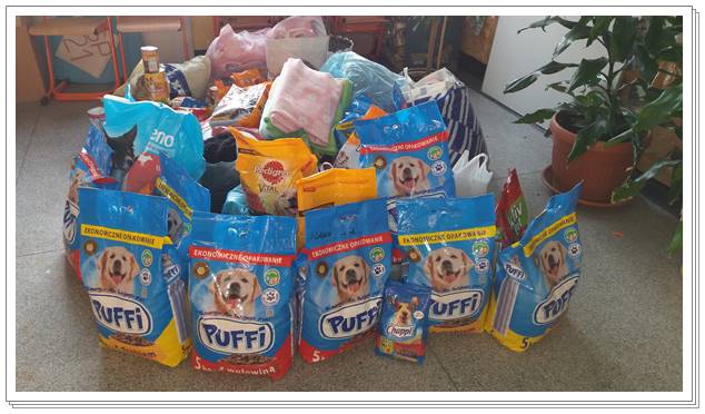 W listopadzie na podsumowanie akcji "Ręka w łapę" odwiedzili naszą szkołę wolontariusze wraz ze swoimi ukochanymi czworonogami. Nad prawidłowym przebiegiem akcji czuwały panie Marta Lach i Dorota Marzec. Dzieci mogły dowiedzieć się jak należy właściwie opiekować się czworonogami i co zrobić aby adoptować kundelka ze schroniska. Na zakończenie przekazaliśmy zebrane dla schroniska liczne dary w postaci specjalistycznej karmy, kocy, misek oraz uprzęży i zabawek. W imieniu podopiecznych i pracowników schroniska serdecznie dziękujemy naszym uczniom i ich rodzicom za zrozumienie i tak liczny udział w akcji. Zapraszamy do pomocy za rok!