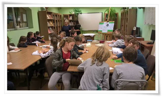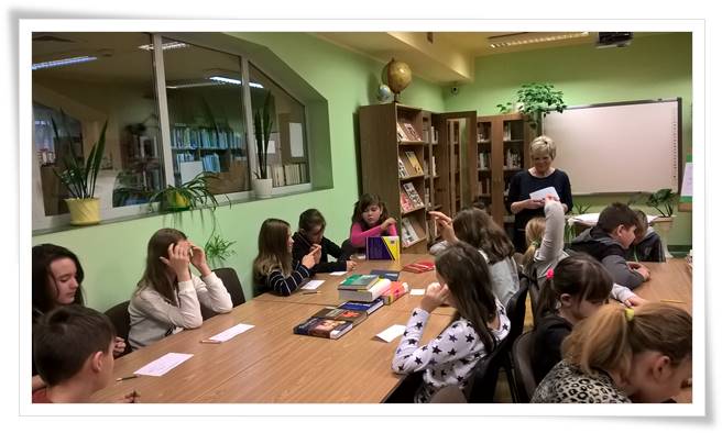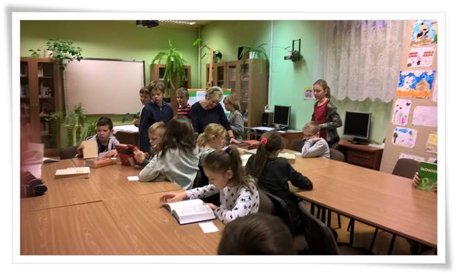 12 grudnia uczniowie klasy 4a wybrali się do Miejskiej Biblioteki Publicznej na warsztaty "Encyklopedie i słowniki jako wydawnictwa informacyjne". Uczniowie mieli okazję poznać umiejętności korzystania z encyklopedii, słowników i leksykonów. Poznali nowe pojęcia , jak chociażby żywa pagina, synonim i związek frazeologiczny. Po omówieniu budowy różnych wydawnictw informacyjnych, ich różnorodności, zakresu tematycznego uczniowie przystąpili do pierwszego ćwiczenia. Każdy dostał określone hasła i musiał wyszukać jego znaczenie w odpowiednim słowniku lub encyklopedii. Wspólnie odczytaliśmy głośno zadania do wykonania oraz udzielone odpowiedzi. W ćwiczeniu uczniowie mieli okazję zobaczyć jak przydatna jest znajomość alfabetu w wyszukiwaniu niezbędnych informacji. W dalszej części warsztatów odgadywali związki frazeologiczne ukryte w rebusach oraz odczytywali historię Piotra odszyfrowując frazeologizmy i komponenty frazeologizmów zilustrowane przez rysunki w tekście. Wszystkich zaskoczyła różnorodności dostępnych słowników i encyklopedii. Zabawa była przednia, a największą popularnością cieszył się słownik wyrazów kłopotliwych, słownik frazeologiczny i Księga Imion.