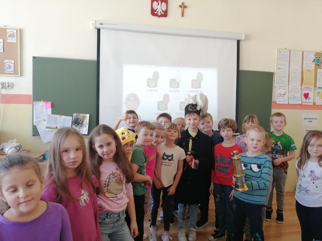 4 grudnia obchodzimy Dzień Górnika – dzień ten przypomina o ciężkiej i niebezpiecznej pracy ludzi przy wydobywaniu naturalnych bogactw ziemi. Święto to obchodzone jest na cześć patronki górników – Świętej Barbary – zwanej również Barbórką. Podczas zajęć uczniowie klas 1-3 dowiedzieli się jak ciężka i odpowiedzialna jest praca górników. Poznali wiele ciekawostek na temat górniczego stroju, usłyszeli legendę o Skarbniku – dobrym duchu kopalni, dowiedzieli się dlaczego święto górników to Barbórka. Dzieci zapoznały się z takimi pojęciami jak czako, sztygar, kilof czy perlik.
