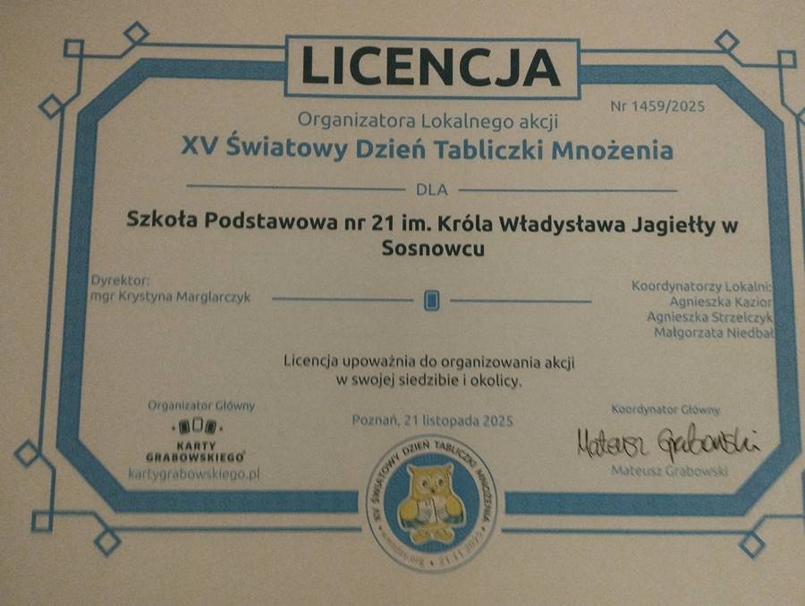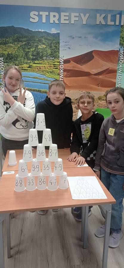 W dniu 21 listopada w naszej szkole obchodziliśmy XV Światowy Dzień Tabliczki Mnożenia. Uczniowie mieli możliwość, poprzez zabawę, sprawdzić swoją znajomość tabliczki mnożenia. Na lekcjach matematyki grali w Bingo, Memory, „Kto ma wynik działania?”, a także rozwiązywali zadania na Wordwallu. Podczas przerw uczniowie grali w tabliczkowe klasy, a patrole uczniów klas ósmych odpytywały społeczność szkolną z tabliczki mnożenia. Była to świetna zabawa!