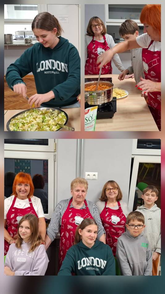 Dziś, w ramach projektu odbyło się popołudniowe spotkanie z babciami naszych uczniów. Wspólny czas spędziliśmy na gotowaniu - była sałatka owocowa i przepyszny makaron z kurczakiem. W czasie gotowania babcie opowiadały o swoich ulubionych potrawach oraz co jest ważne w przygotowywaniu posiłków - miłość i cierpliwość. Było super ❤️