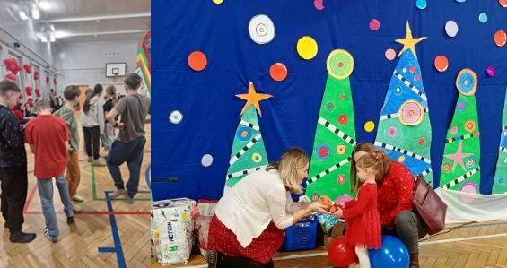 W piątkowe popołudnie nasza szkoła tętniła życiem. Odbył się bieg, zabawa świąteczna, a przybyli na spotkanie goście mogli zakupić - ozdoby wykonane przez naszych uczniów i rodziców, słodkości oraz inne gadżety. Podsumowano szkolny konkurs na ozdobę choinkową: